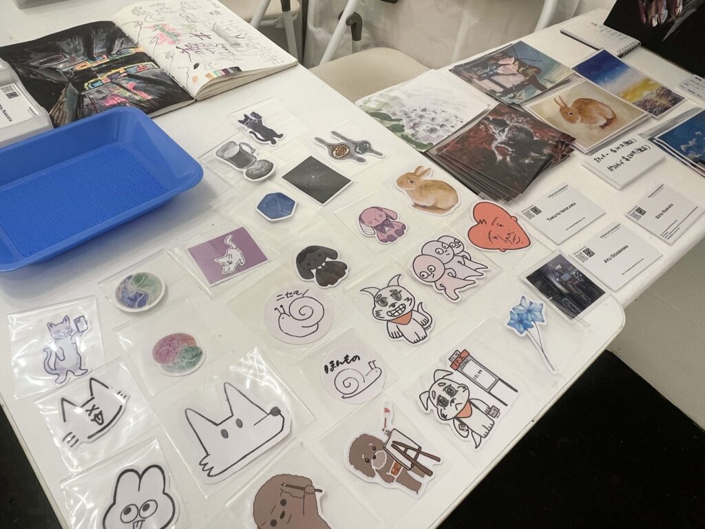 ステッカーやポストカードも展示販売されています!シュールなデザインがたくさんありますよ〜!