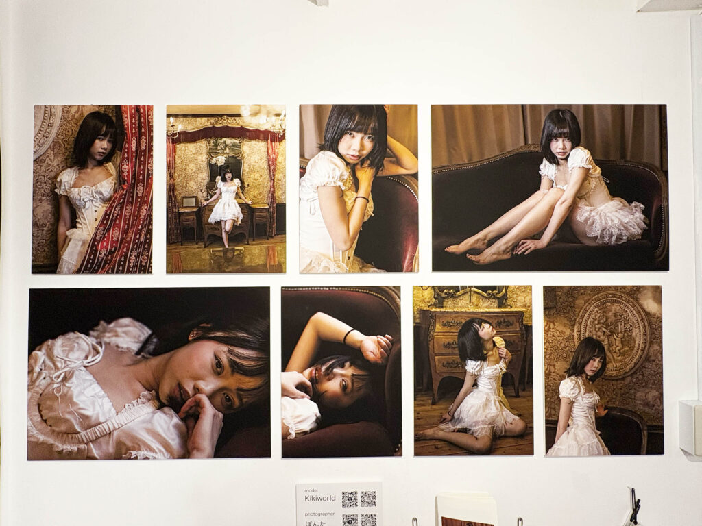 カメラマンさんは写真を撮るだけでなく、その後のプリントの素材やサイズ、展示の装飾など、モデルさんとご自身の個性を大事にどこまでもこだわりを持って展示を考えていることが伝わります。