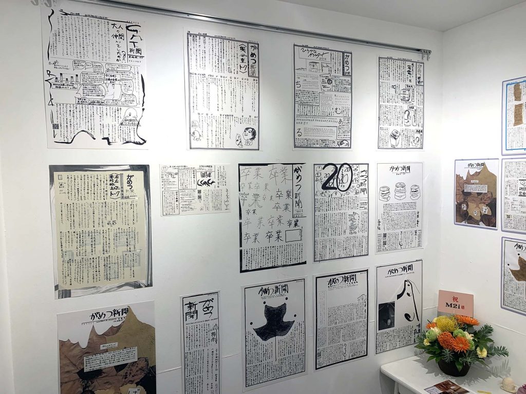 芹田さんは大学一年次から制作されている「がめつ新聞」の展示になっています。