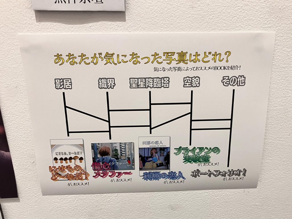 気になる写真を選ぶとその人にオススメの写真集がわかるようになっており、実際にその場で読むことも可能です!!