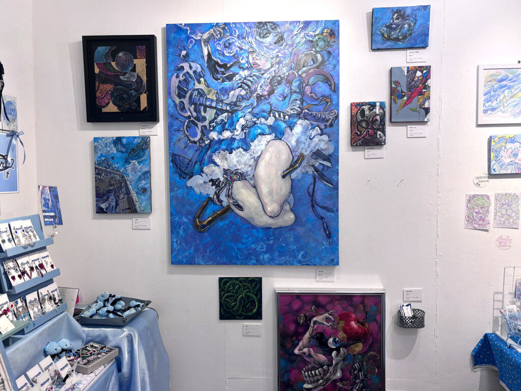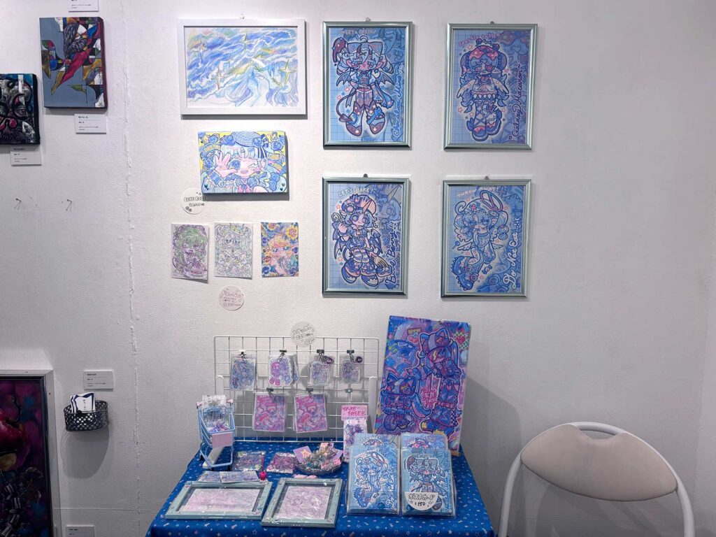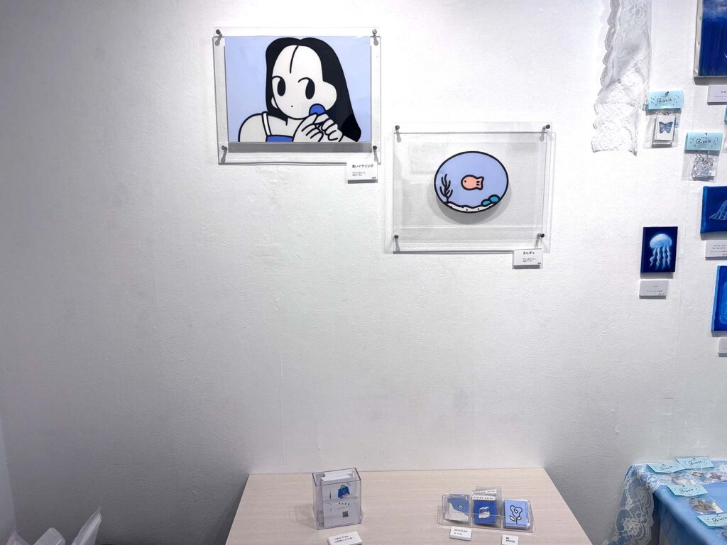 大きな原画作品とステッカー作品などを展示販売いただきました🩵