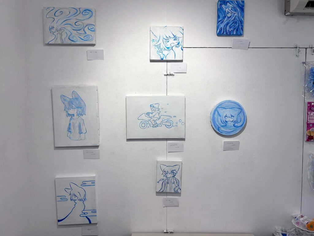 涼しげな青を用いて、オリジナルキャラクターの原画作品を展示いただいております。