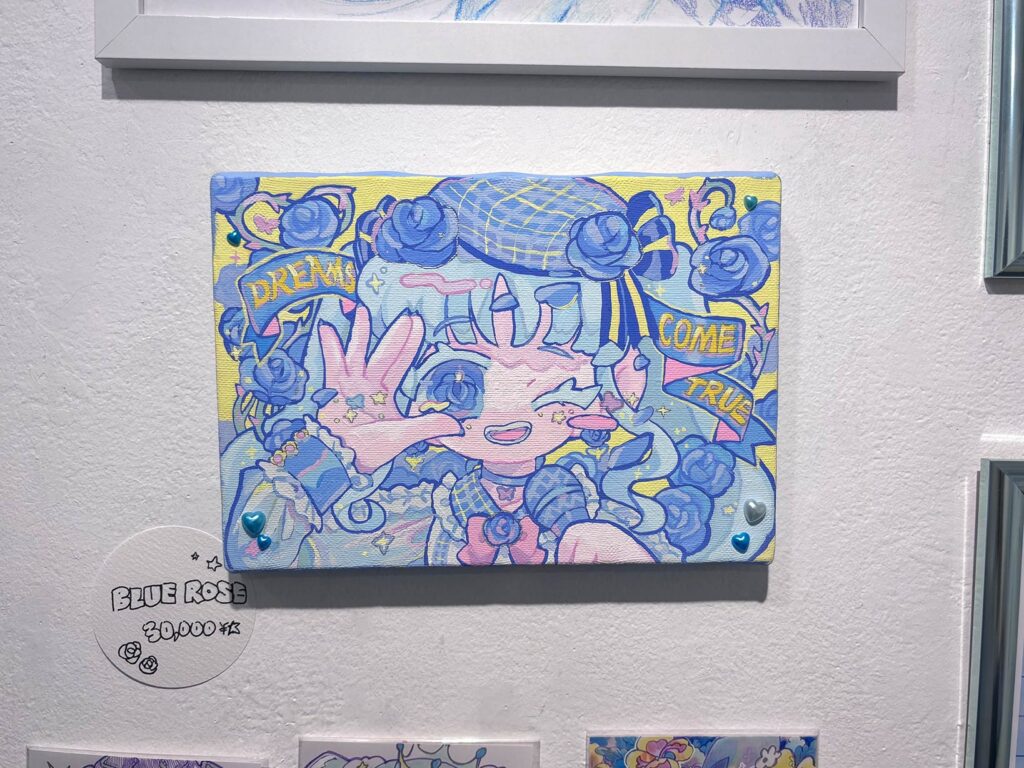 アクリル画をメインに原画作品とオリジナルキーホルダーを展示販売いただいております。