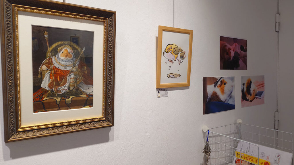 モルモットの写真や作品、関連グッズなど数えきれないほどのモルモットたちが部屋を満たす様子は圧巻の一言!