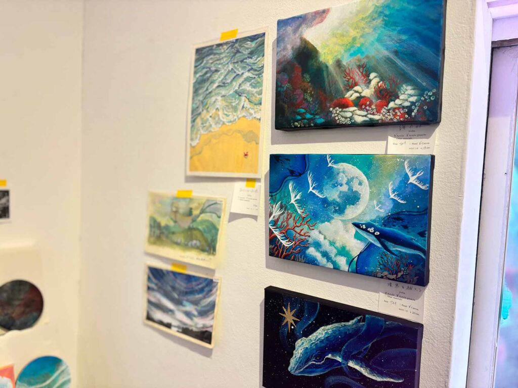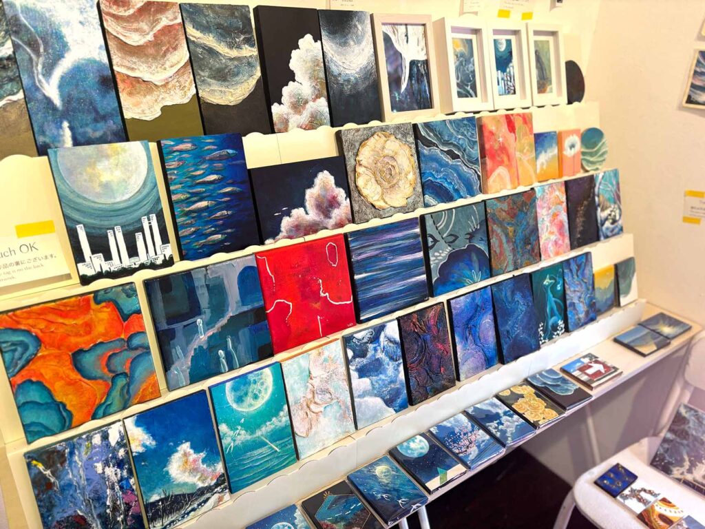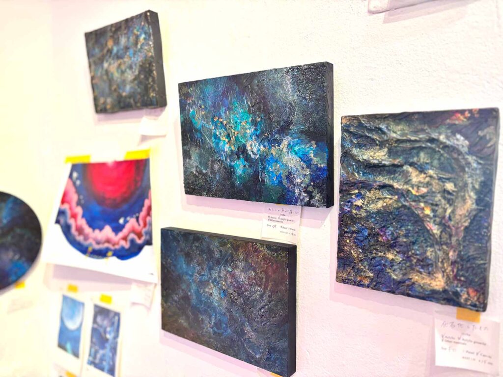 アクリル絵の具やモデリングペーストを用いて、青をベースに様々な世界を彩られるiroha.さん