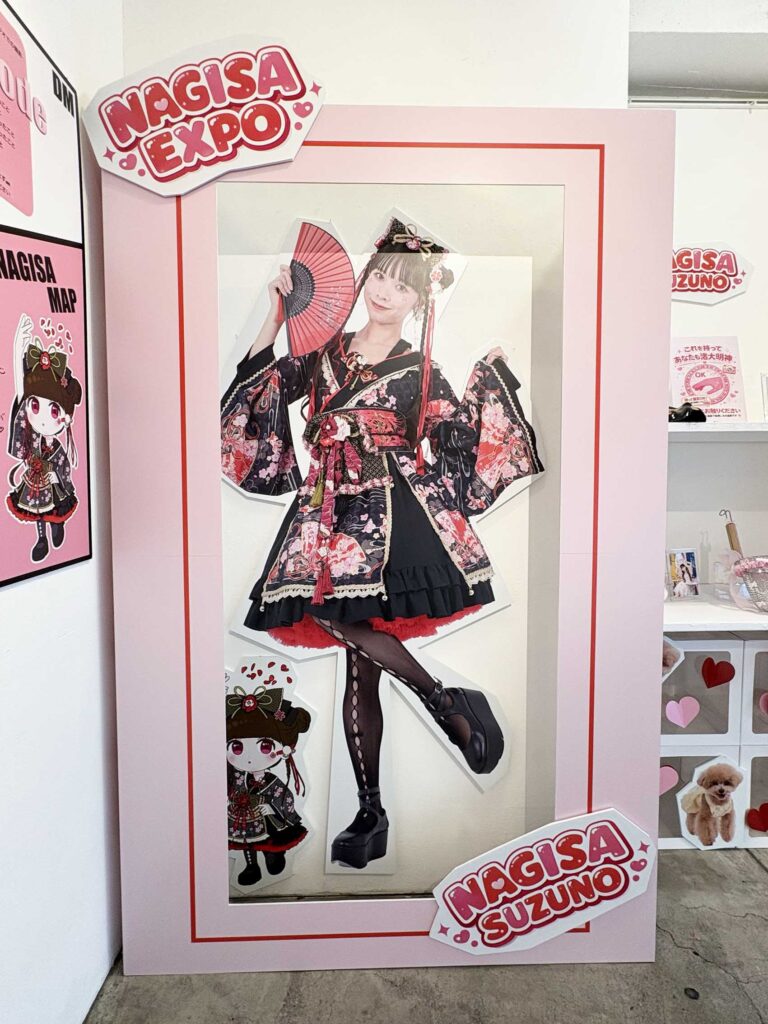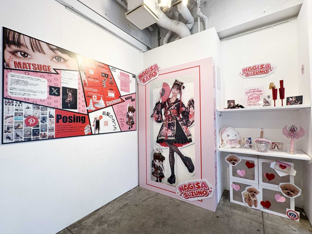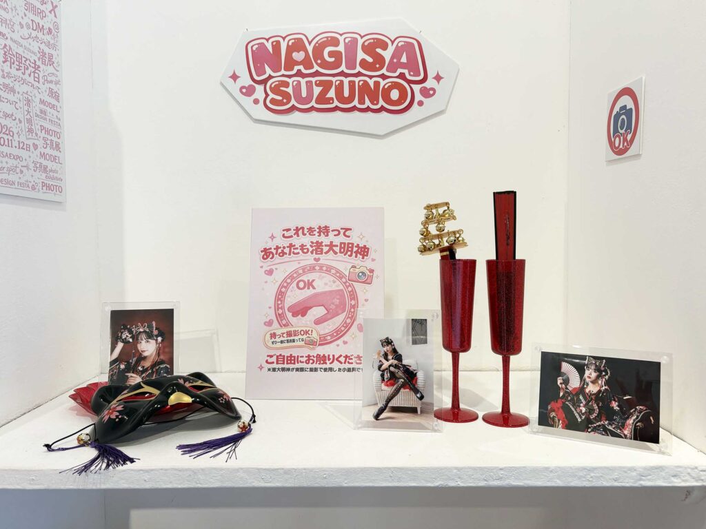 渚さんのプロフィールやモデルとしてのこだわりが書かれたパネルや、撮影で使用された小道具の展示も◎