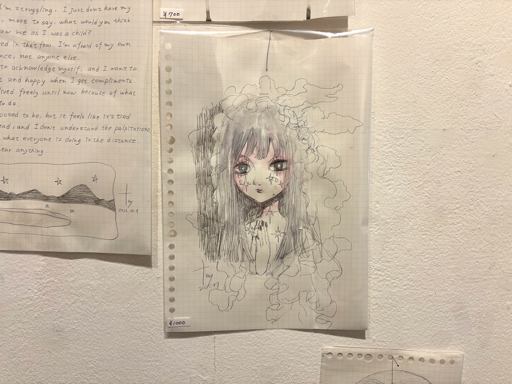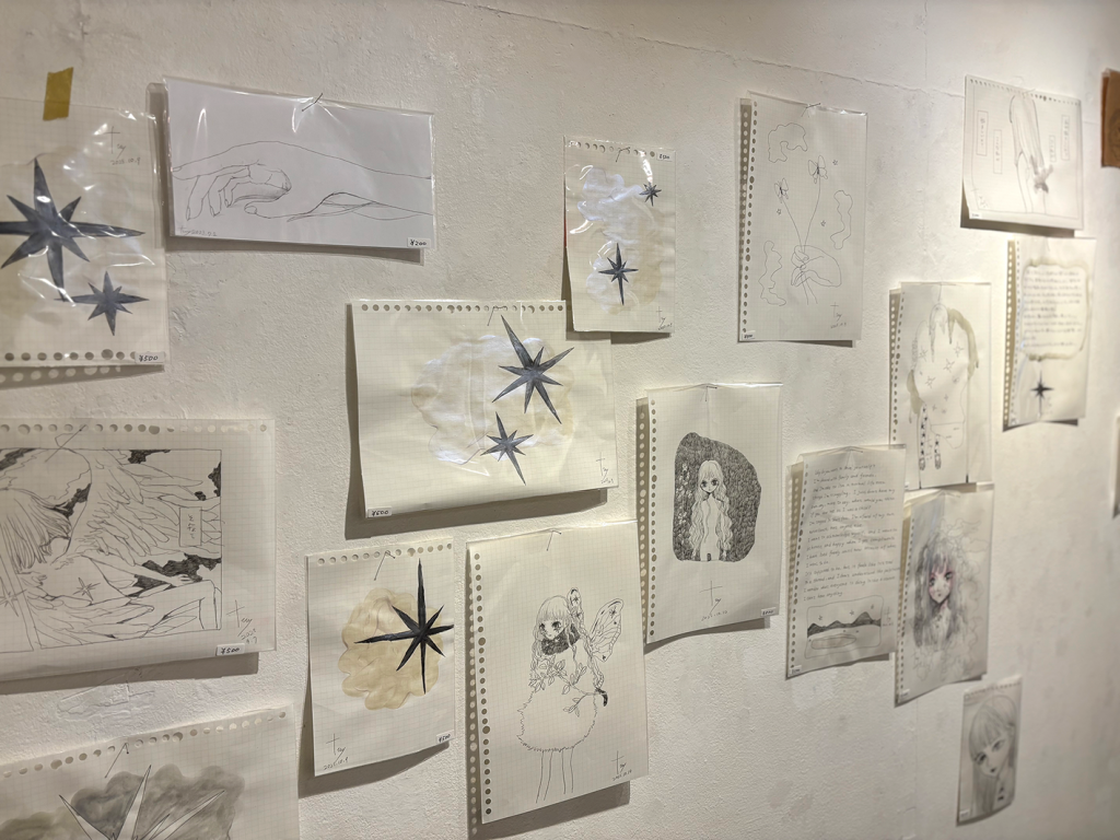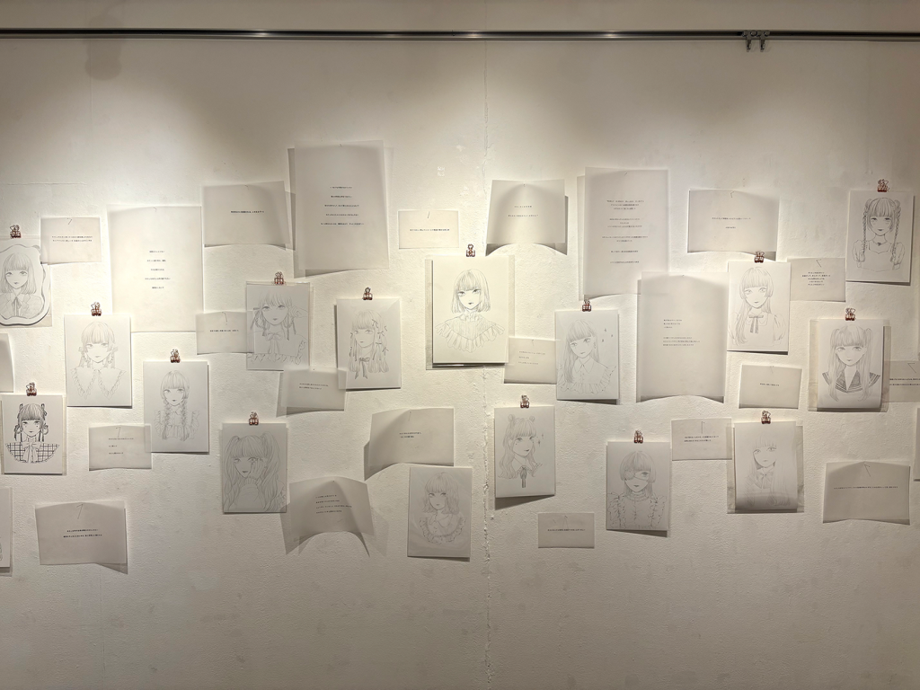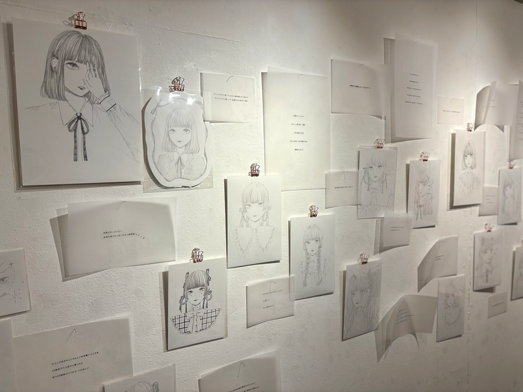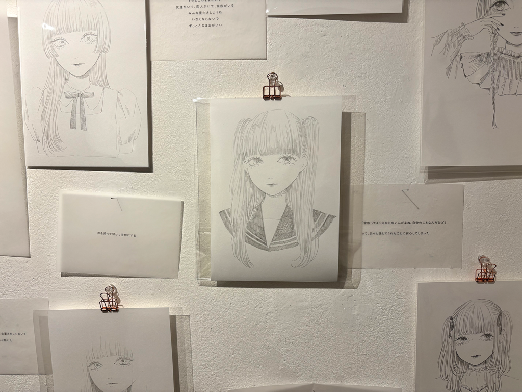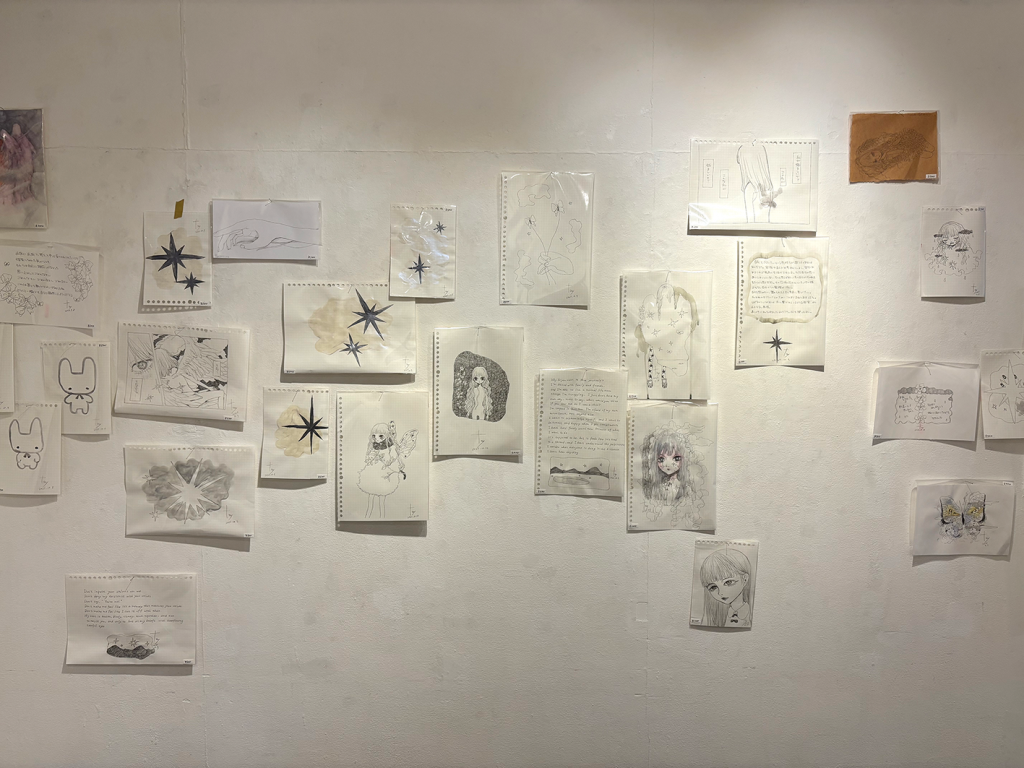 壁には女の子達のイラストと、日記のように綴られた言葉が飾られています。