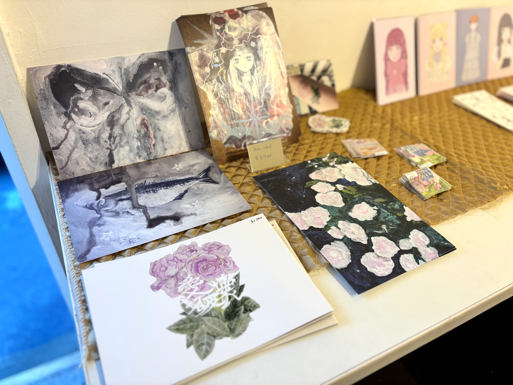 販売ブースにはイラストカードやタトゥーシールなどが展開されており、