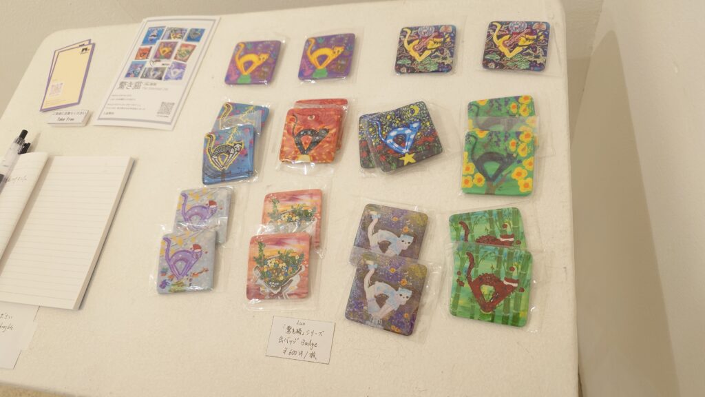 また展示ではイラスト作品と同じ絵柄の缶バッチの販売もあります!!