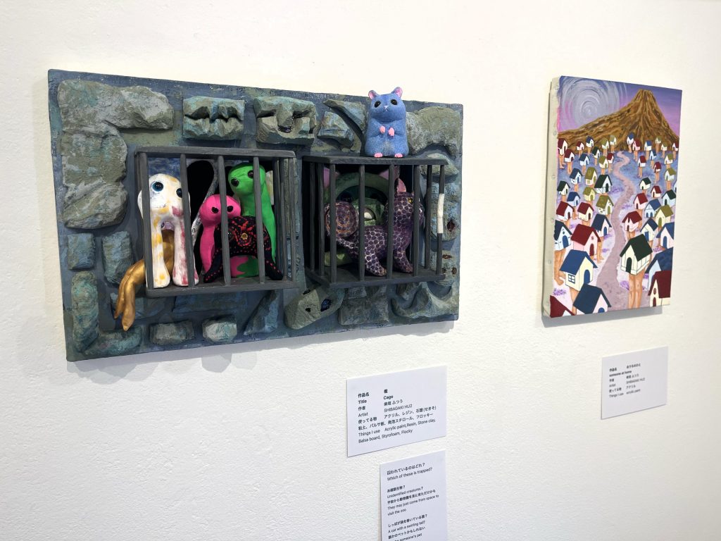 発想や創作視点も面白いです。「囚われているのはどれ」という質問を持ち出して、来場者に考えさせる時間を作ってくれました。