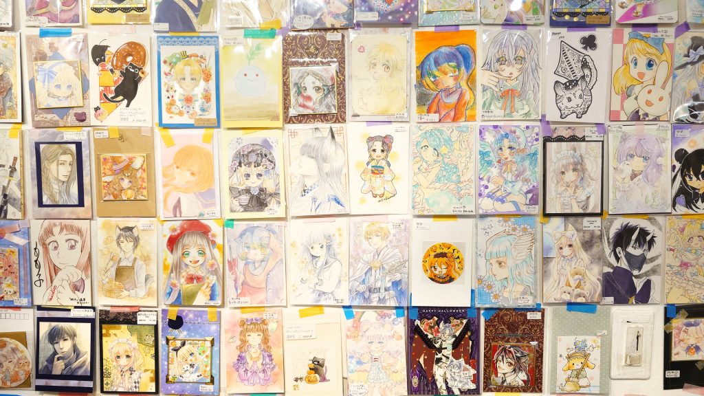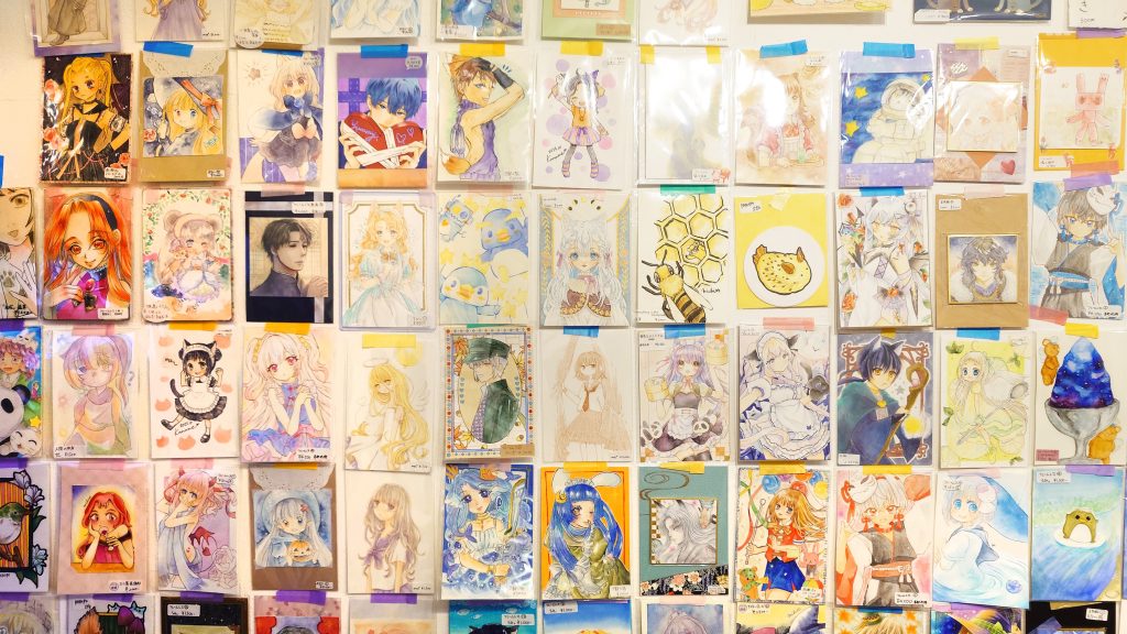 WEST 1-Bに入るとまず目に入るのが壁一面を埋め尽くす沢山のイラスト作品!!