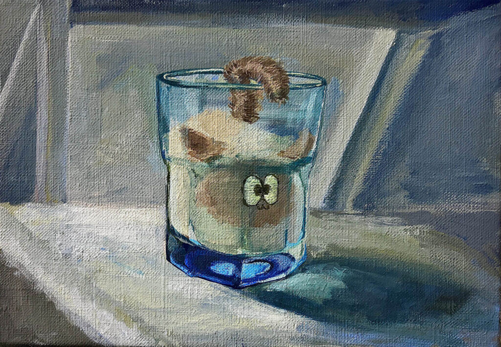 猫のオリジナルキャラクターのぬいぐるみ販売と、キャラクターの世界観を共有するF0~F10サイズの絵画を数点展示します。