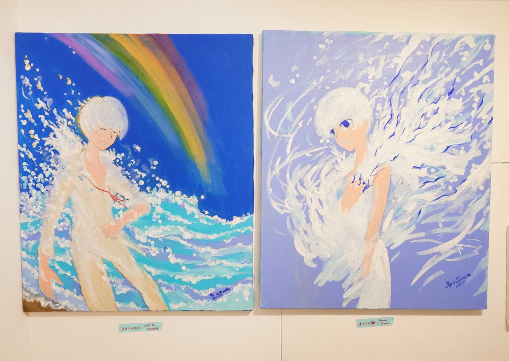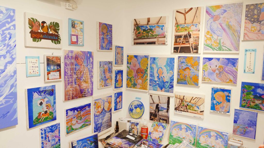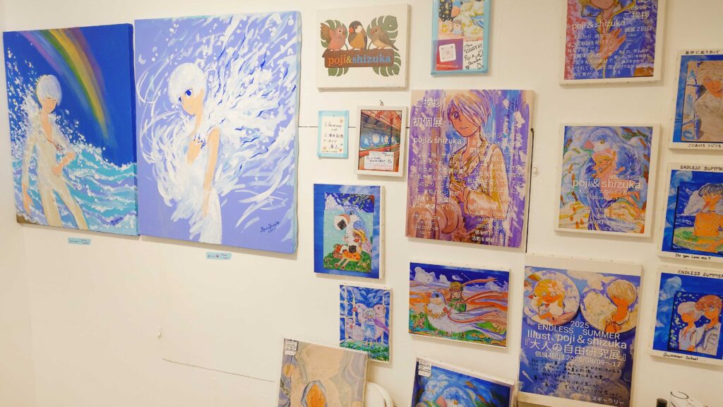 広がる青空にカワイイ少年少女+ポジ君の作品とともにスペースないでは心地よい波の音がBGMで流れてるので