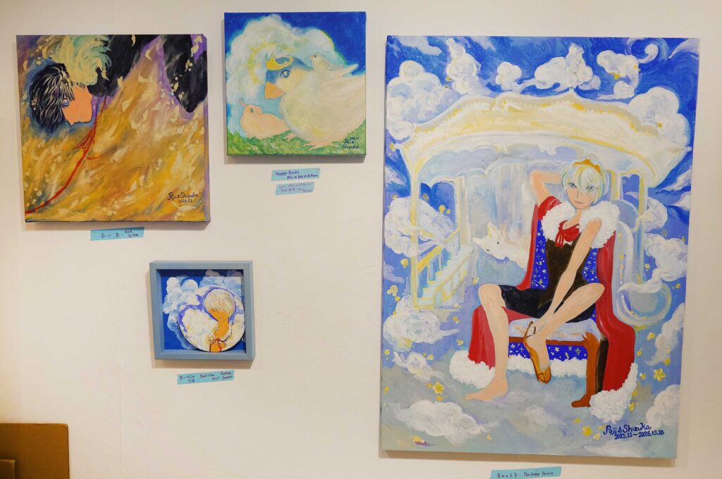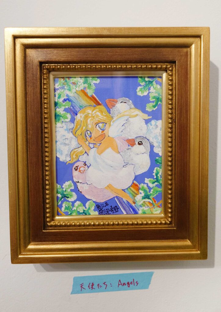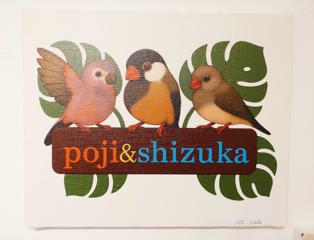 shizukaさんの愛鳥だった文鳥のポジ君を筆頭に様々な作品が展示中です!!