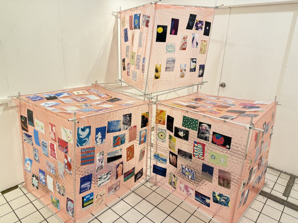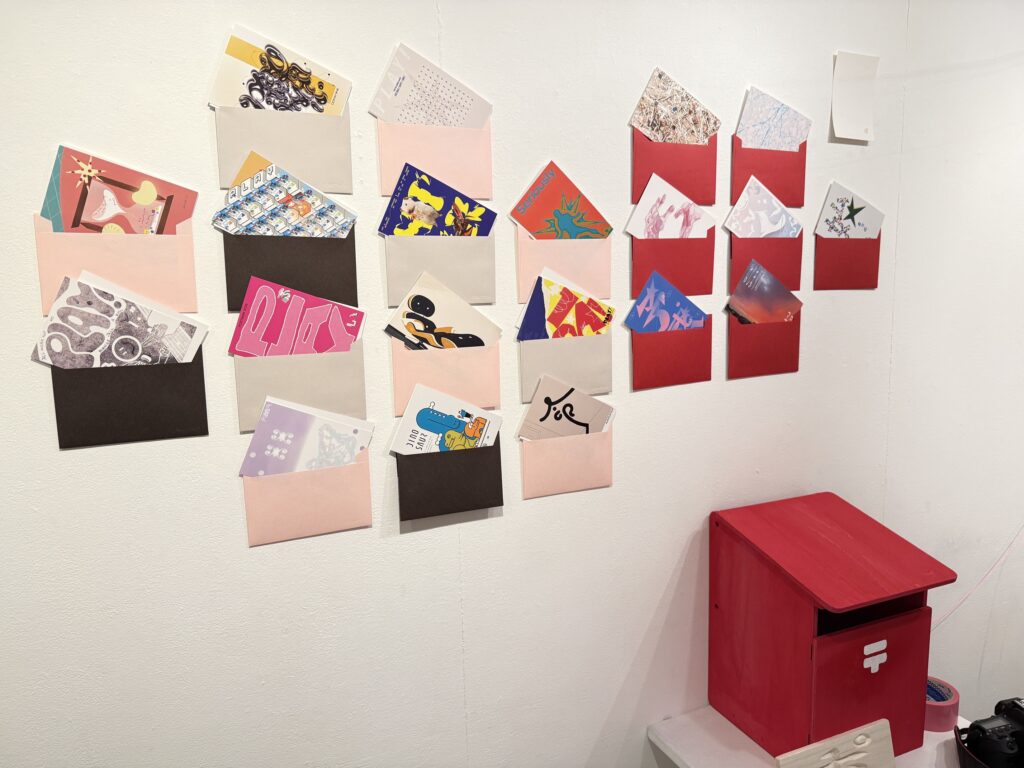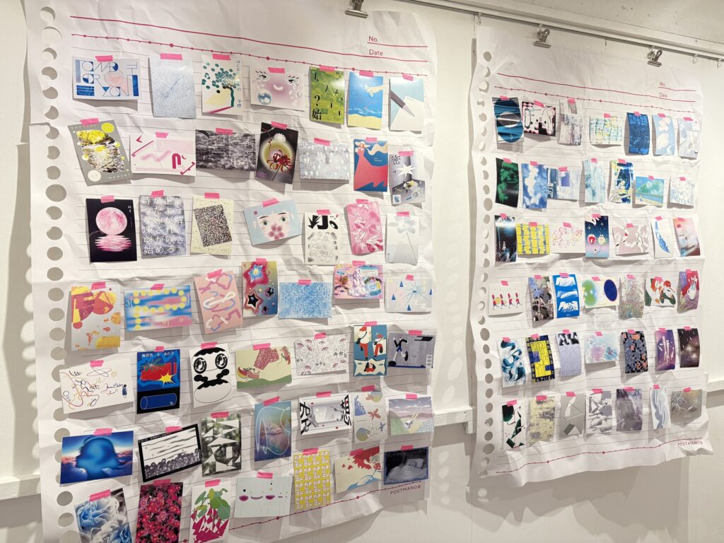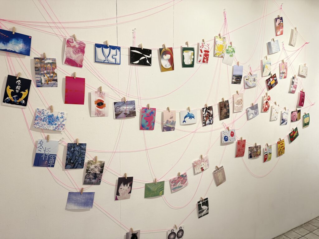 1日1作品、週ごとに変わるテーマに沿って制作されたポストカードたちが並びます。