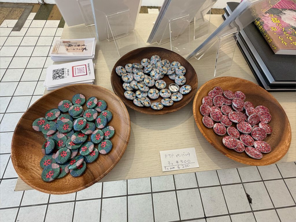 今回の展示ではPTP包装で制作された作品たちのグッズも販売されています!