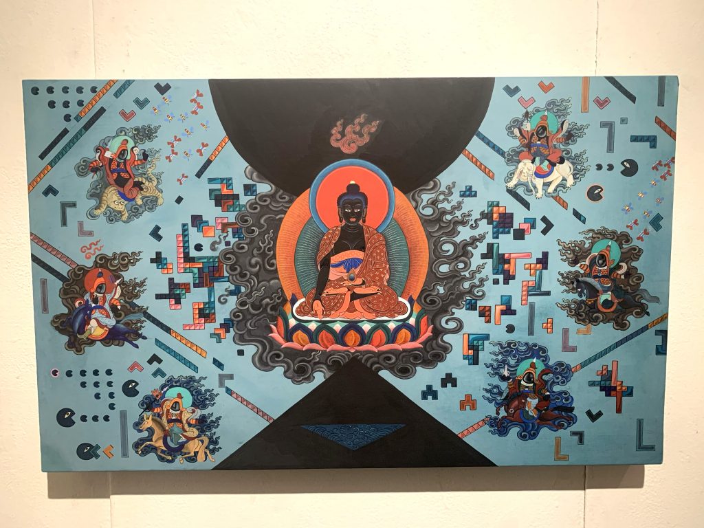 この展示では現在モンゴルで起こっている都市の集中による問題やその他様々な課題を若い世代のアーティストが伝統や文化を残しつつ表現した作品になります。東洋と西洋の混合した作品になっており、幾何学的な表現から仏教の視点も取り入れたりと深みのある作品になっています。