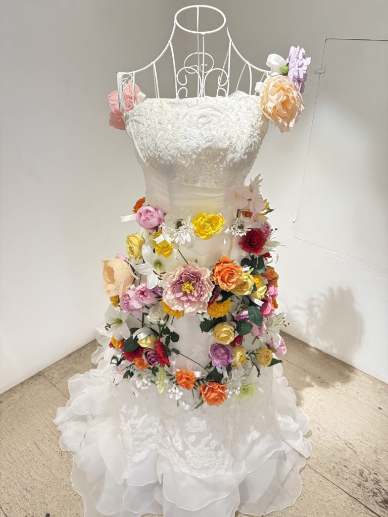 こちらは「Remind=思い出させる」をテーマに、ウエディングドレスと花をモチーフにしたインスタレーションです。