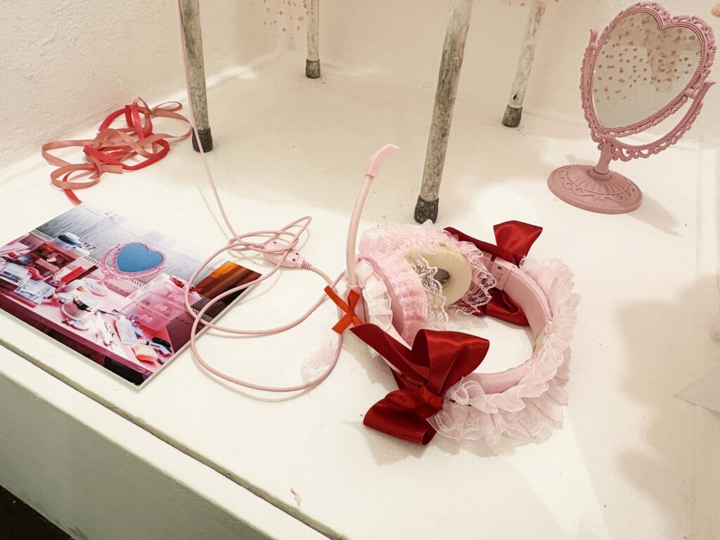 パソコンとヘッドセットがレースやリボンで可愛らしく装飾され、甘い雰囲気にキュンとします!