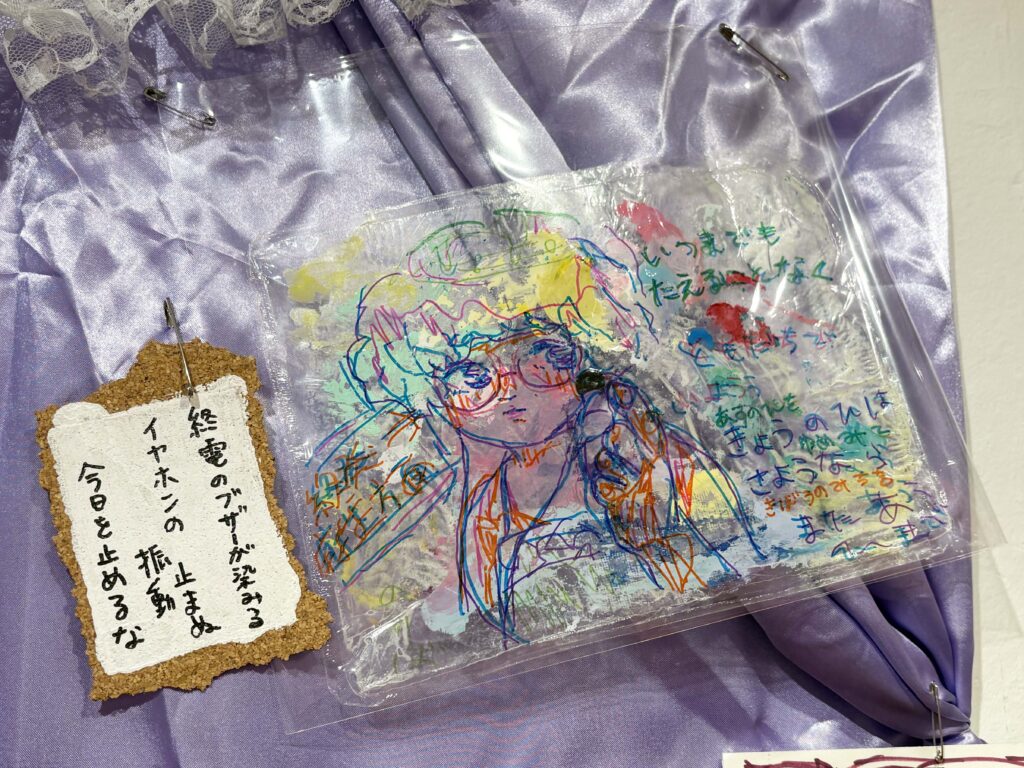 パレット代わりに使われた透明のシートの上からペンで描かれた作品も。