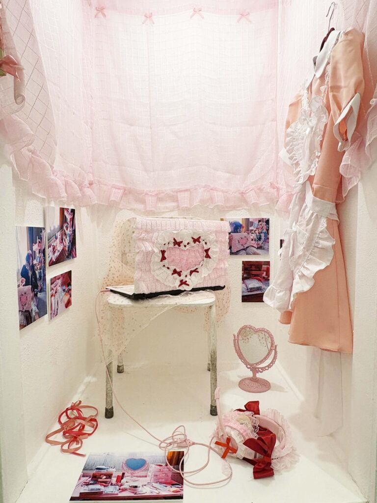実際に作品のパソコンとヘッドセットを用いてお部屋で撮影された写真も展示されています。
