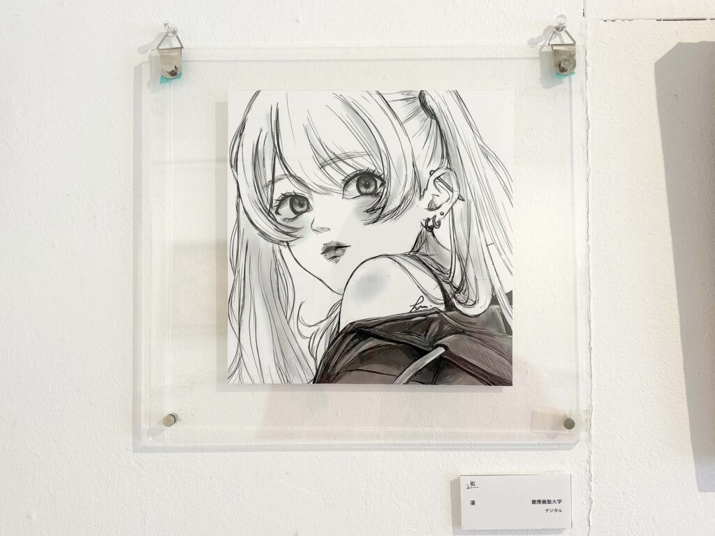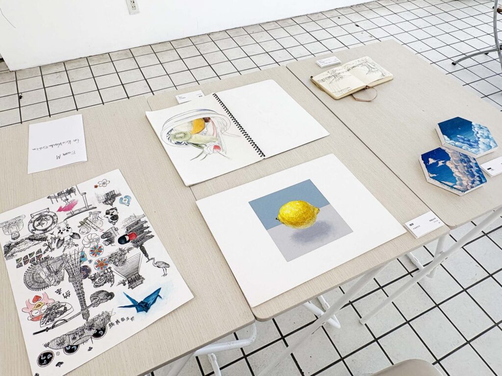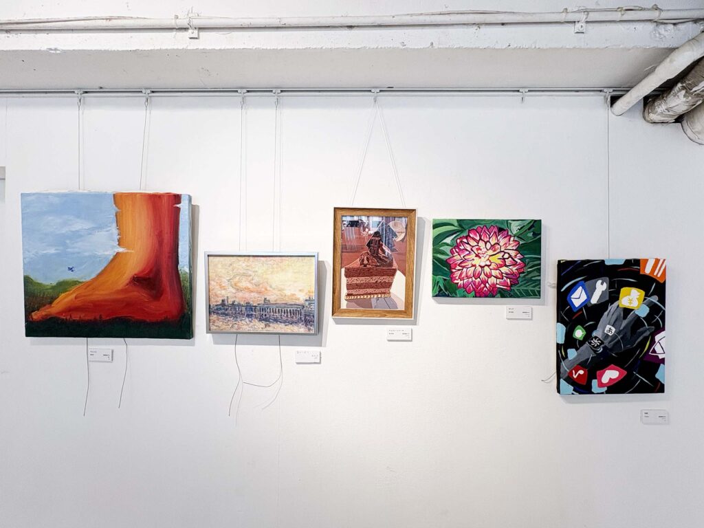 展示作品は特定のテーマを決めていないようで、風景、人物、生物、抽象的なものまで、学生さん各々が描きたいものを自由に表現されています。