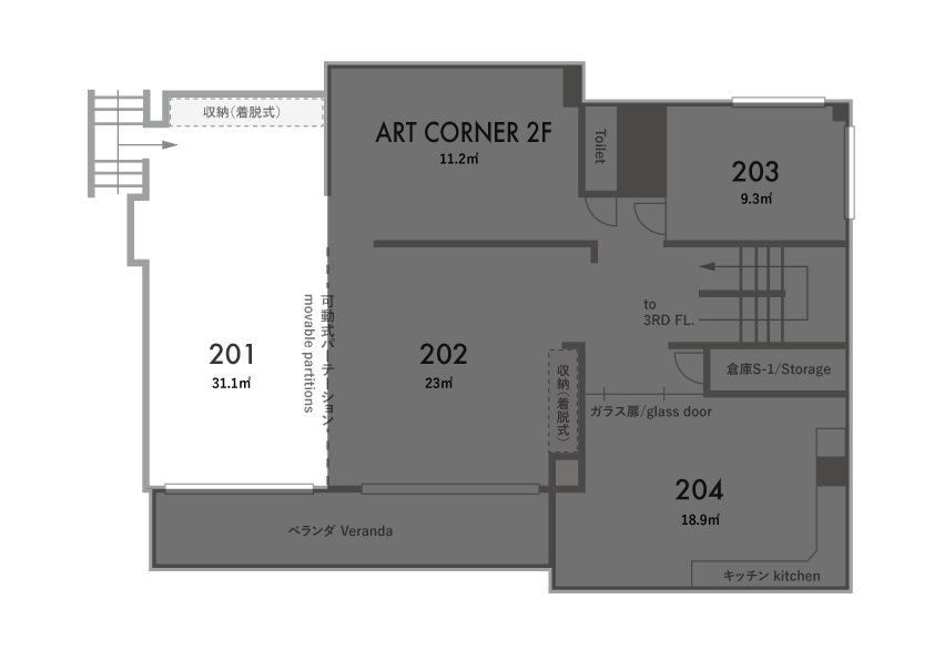 | EAST | 201 | 202 | 201+202 | 203 | 204 | ART CORNER 2F |