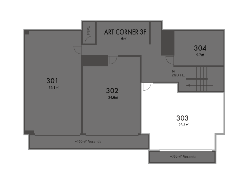 | EAST | 301 | 302 | 303 | 304 | ART CORNER 3F |
