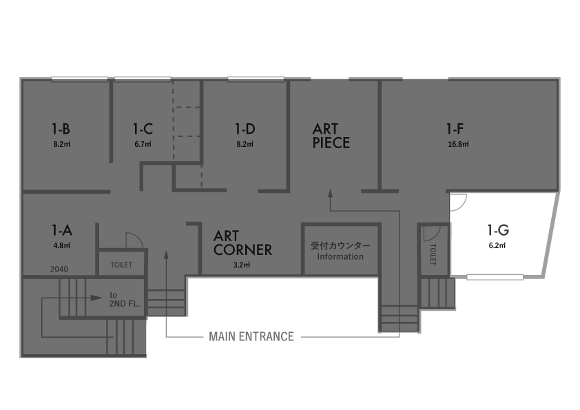 | WEST | 1-A | 1-B | 1-C | 1-D | 1-F | 1-G | ART CORNER |