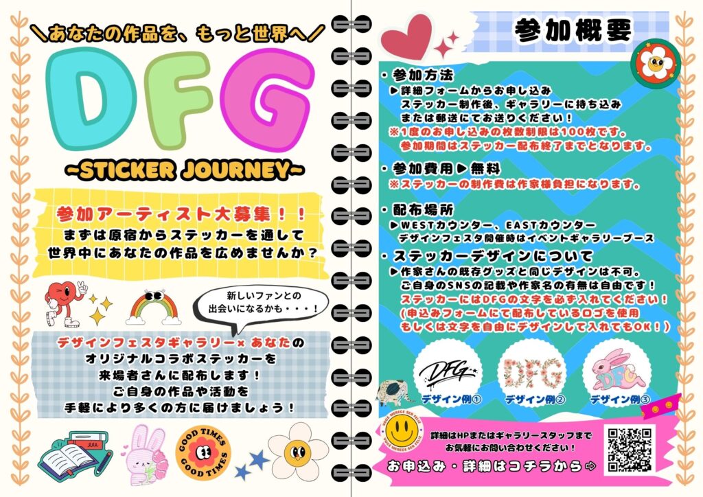 ・デザインフェスタギャラリー原宿とのコラボステッカーのため、デザインの中にギャラリーの名前の表記を必ず入れるようお願いいたします。