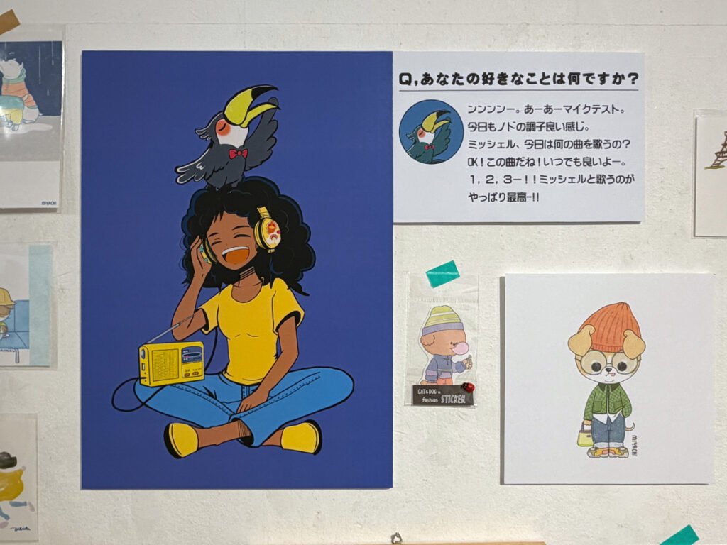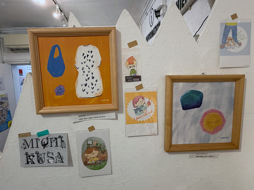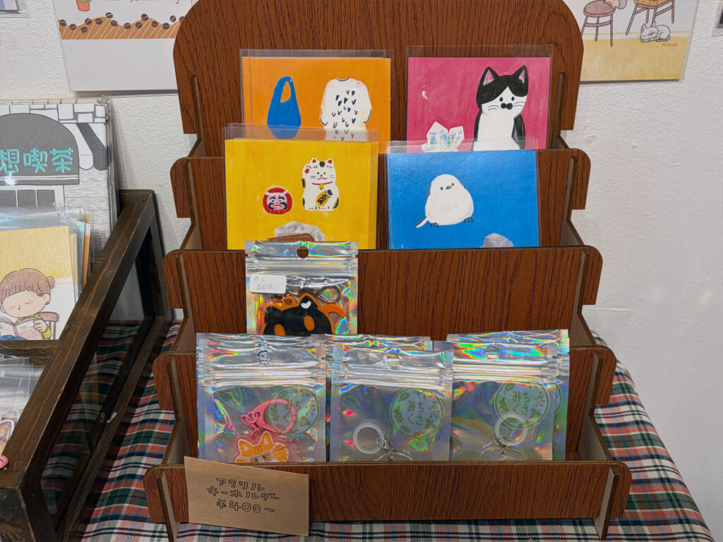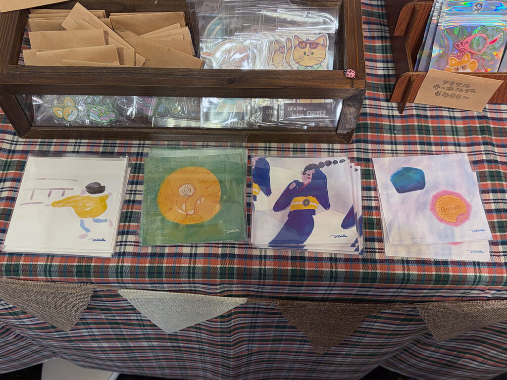 今回の展示ではイラスト作品以外にも、グッズがたくさん展示販売されています✨