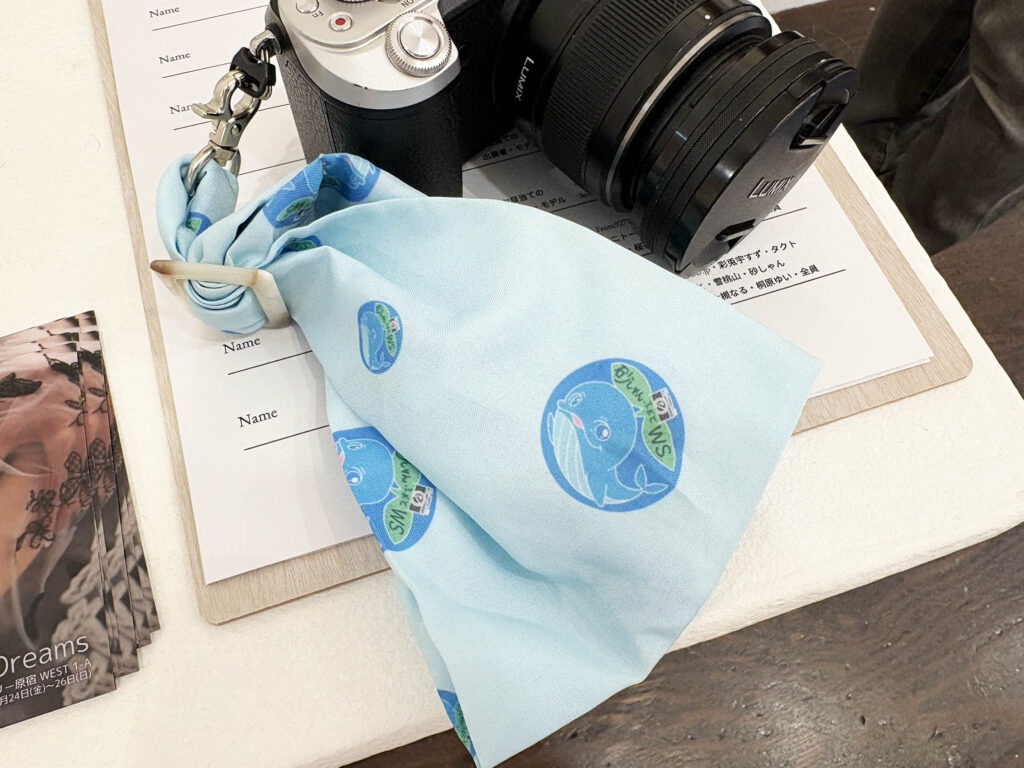 鯨の愛らしいキャラクターが印象的、こちらの「砂しゃんふぉとWS」のロゴは、モデルの美月ハルさんが手掛けたとのこと!