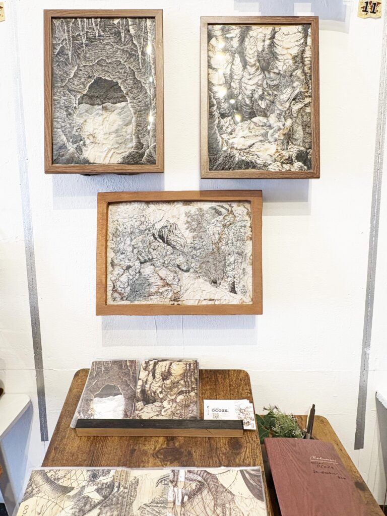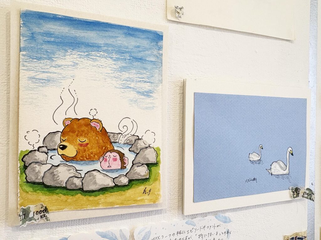 かつてお仕事で日本中を回っていた、古川さんのお父様が描かれた作品のほんの一部だそう。ずっと部屋で眠っていて、それがもったいないと思い、お父様に許可を得て展示をすることを決めたそうです。そんな古川さんの思いや行動力が素敵だなと思いました。