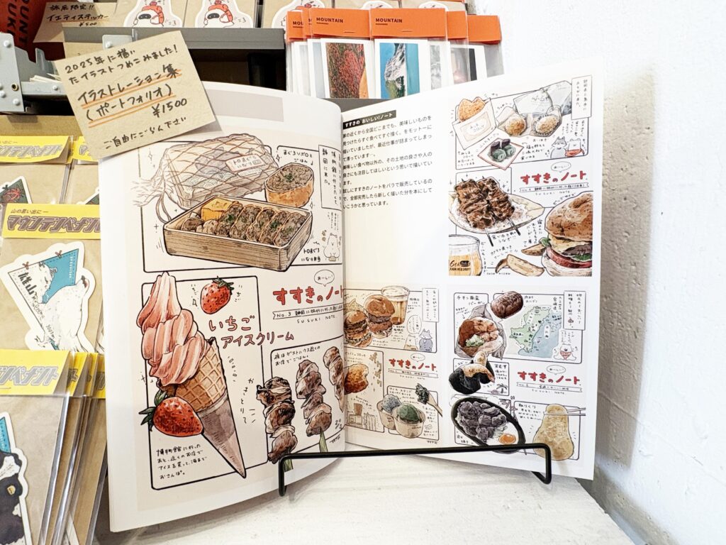 すすき荘さんの地元の美味しいお料理や、旅した土地の魅力的なものを素敵なイラストで紹介してくださっています✨