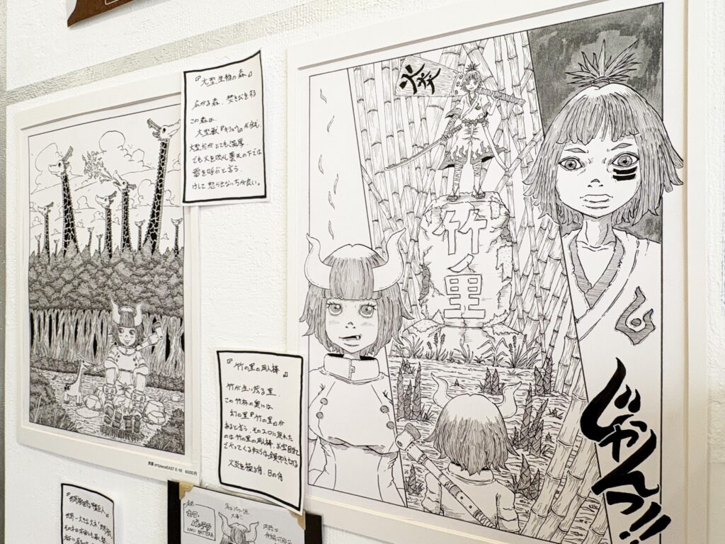 本展示は角の生えた女の子、つのがぁるが異世界を旅するイラストを展示されています。細部までの丁寧な描き込みが素晴らしく、キャラクターの表情も可愛いです!物語の世界に惹き込まれてゆきます✨