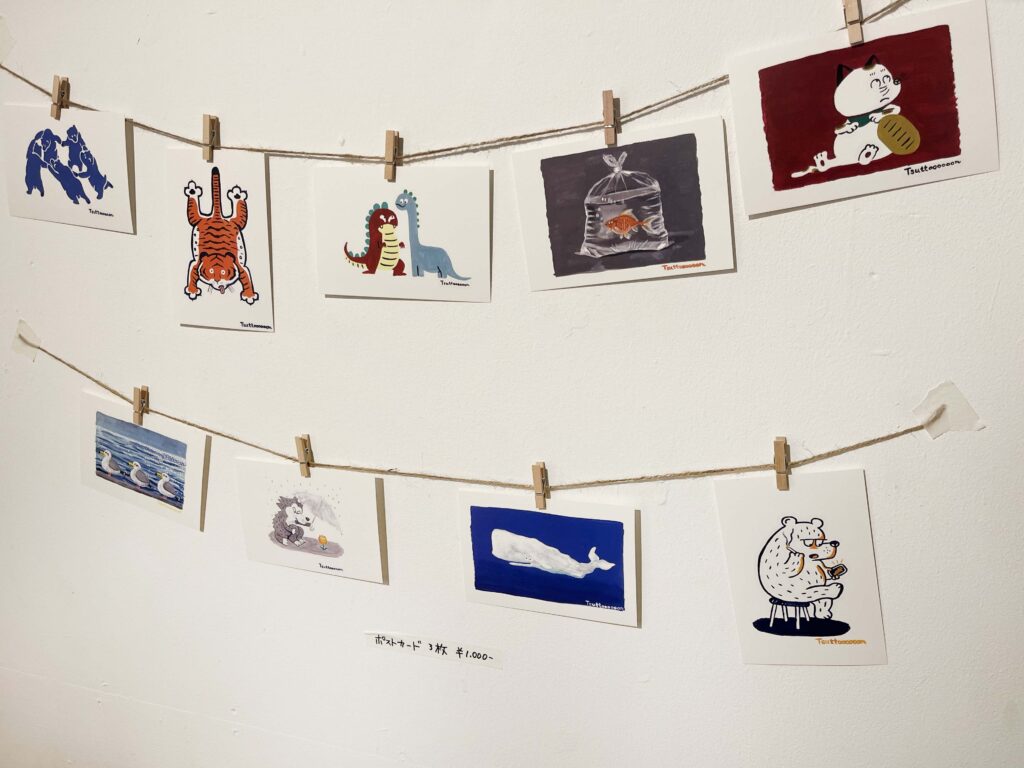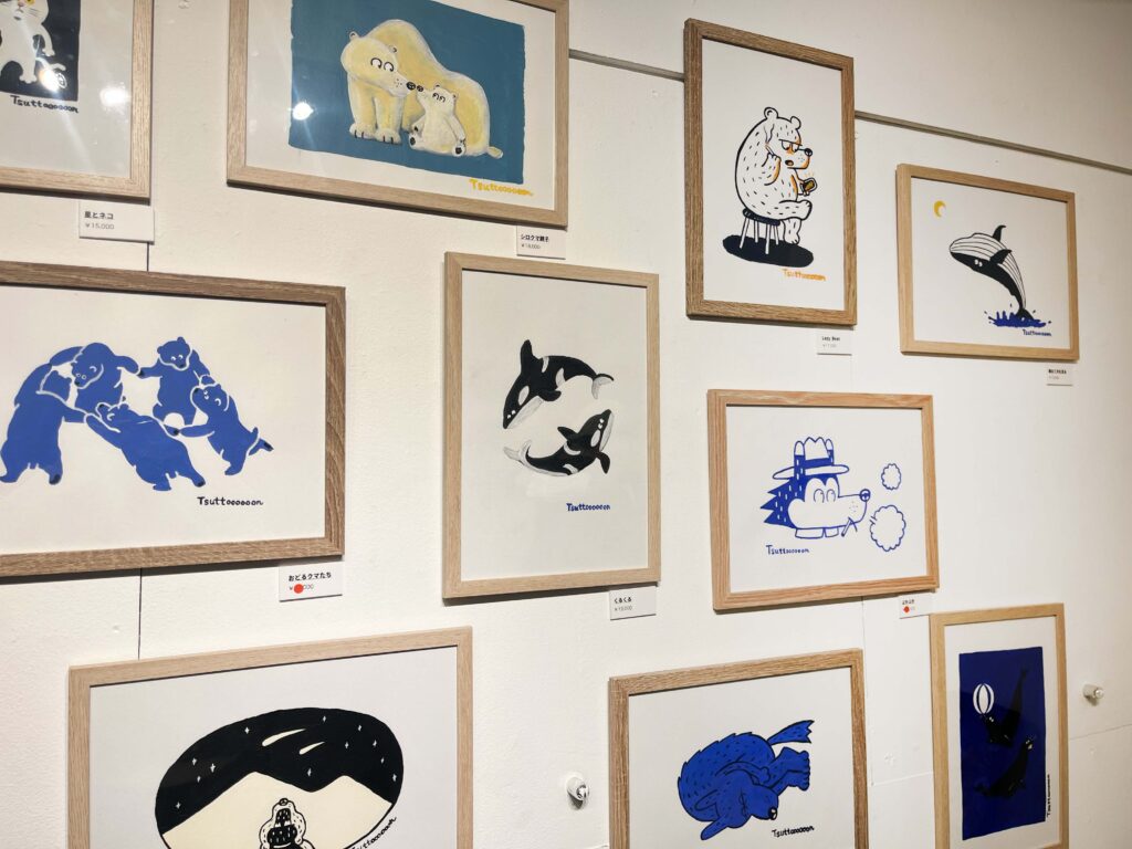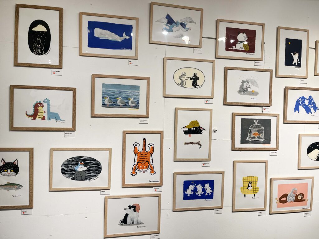 動物をモチーフにしたイラスト作品が壁にずらり!!