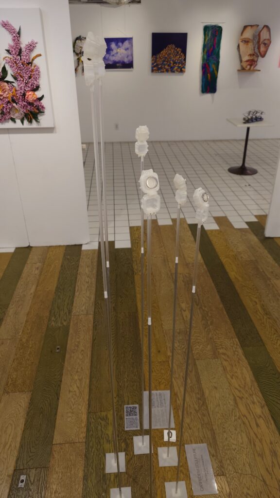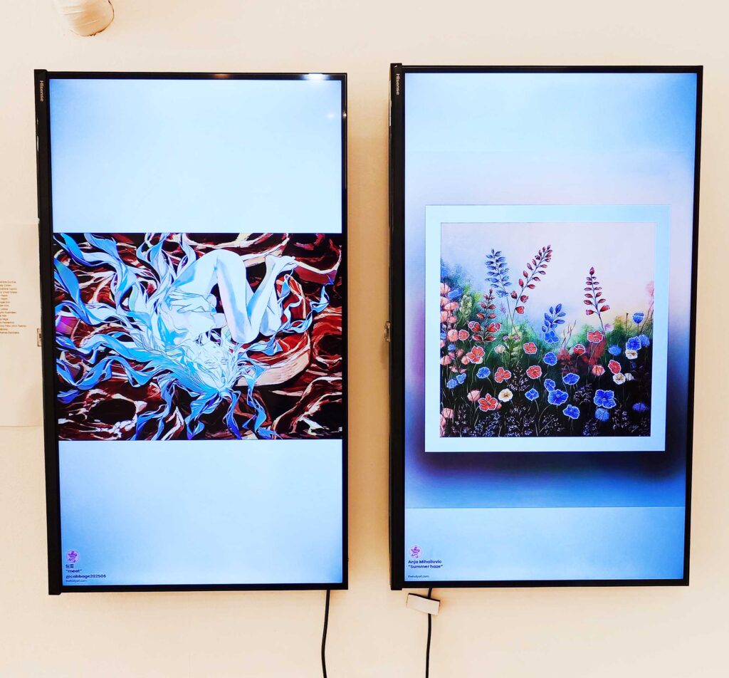 平面作品のみならず、立体の作品や、原画の郵送が難しかったアーティストはスクリーン越しでの参加もございました。