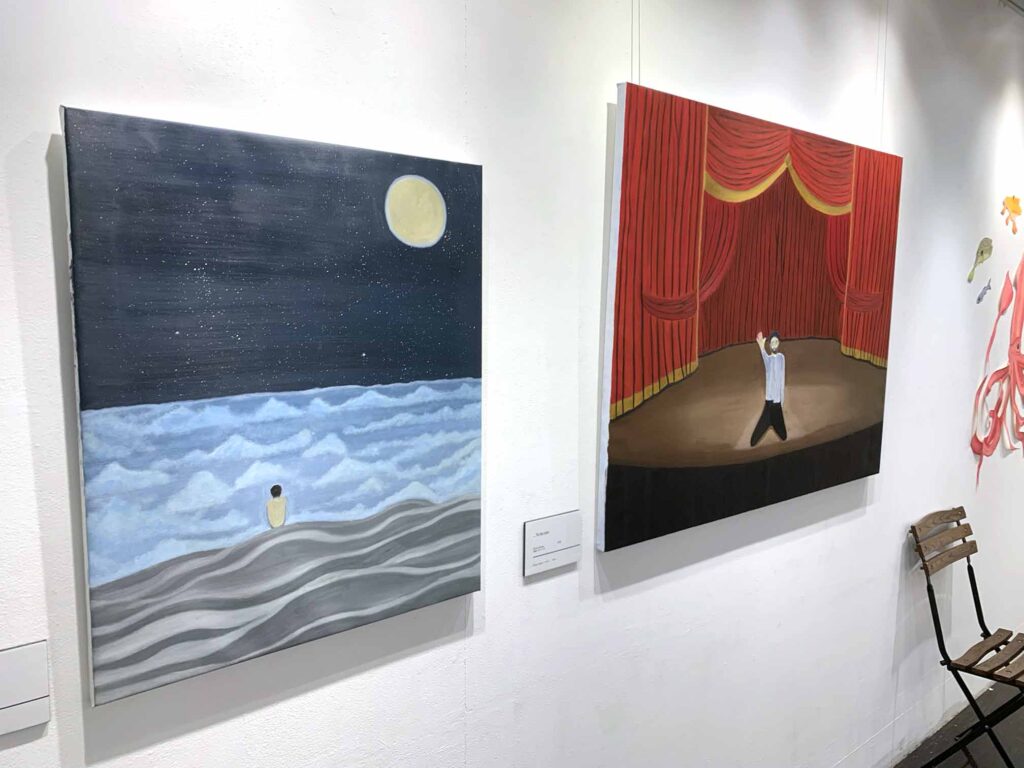 作品の中のは絵画以外にも立体などの多彩なジャンルの作品が並びます。