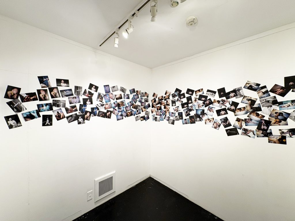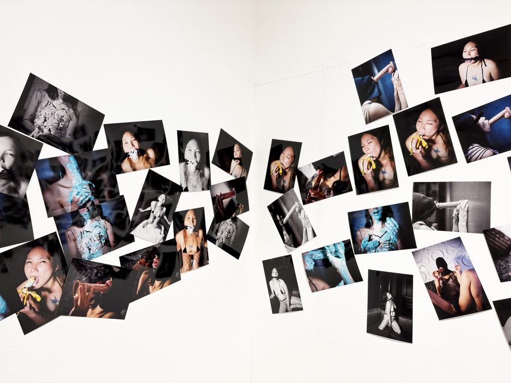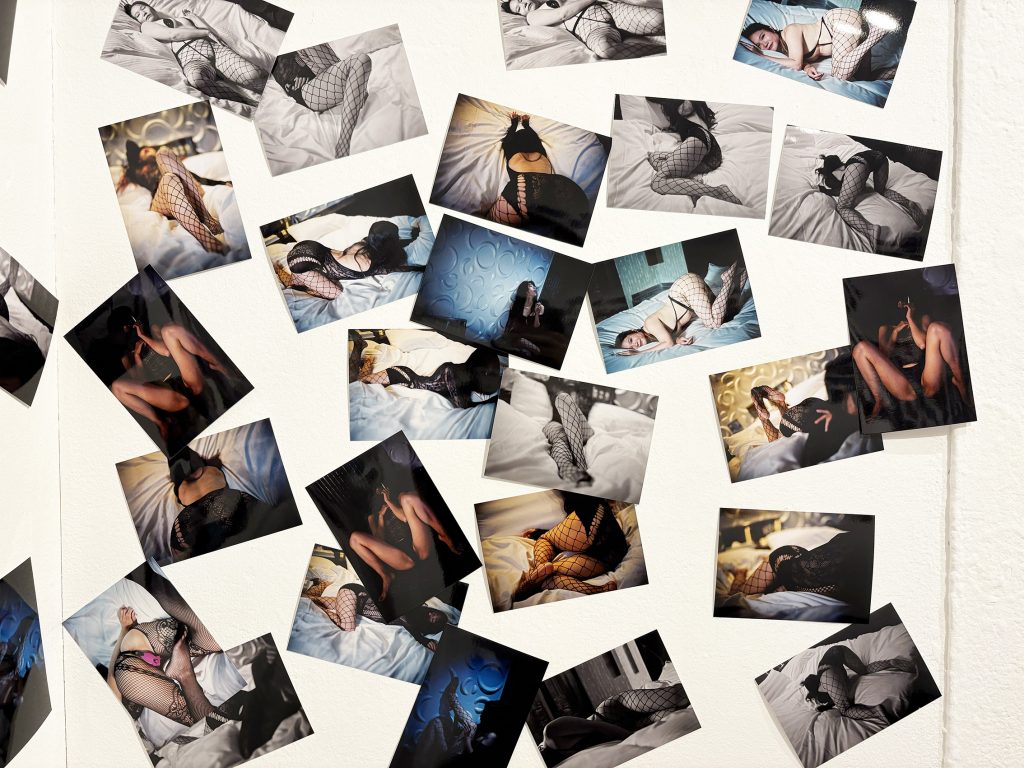 本展示は「網タイツ」「M字開脚」「濡れ(水)」「よだれ」の4つで構成されています。