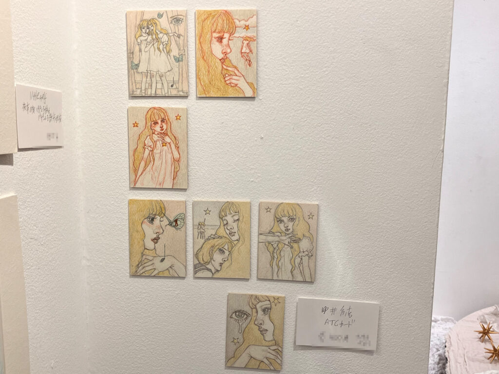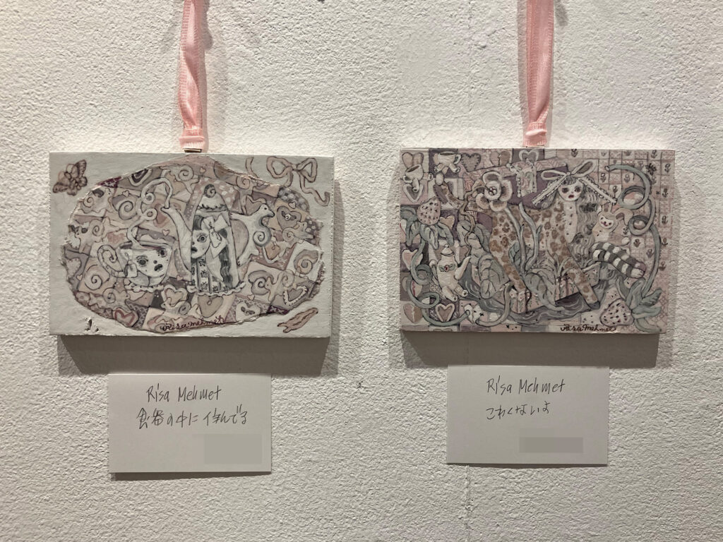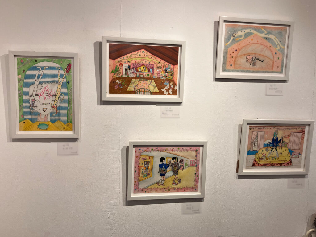 水彩やペン、オイルパステルなど作家さんごとに様々が画材が使用されています。