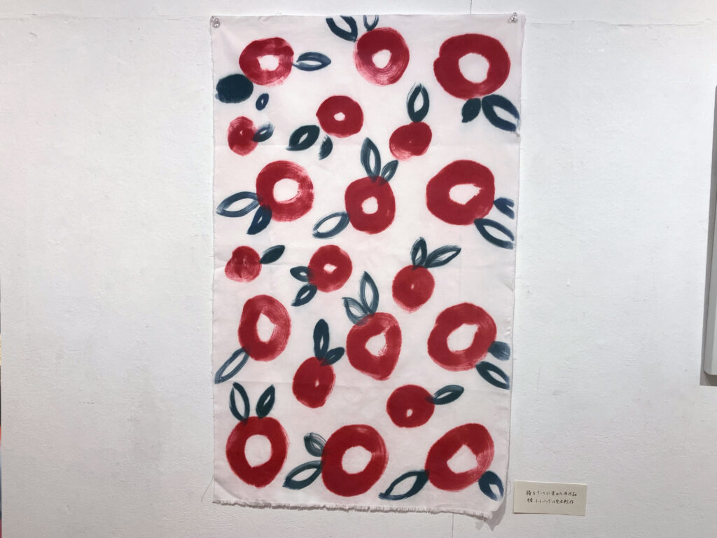 白地の布に真っ赤な椿がよく映えていて、とても目を惹く作品です😆