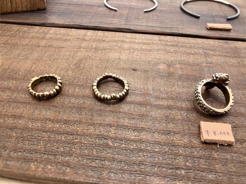 アクセサリーはリングやチャームパーツが中心に展示されており、シルバーや真鍮の深みのある色合いがとても素敵です!!
