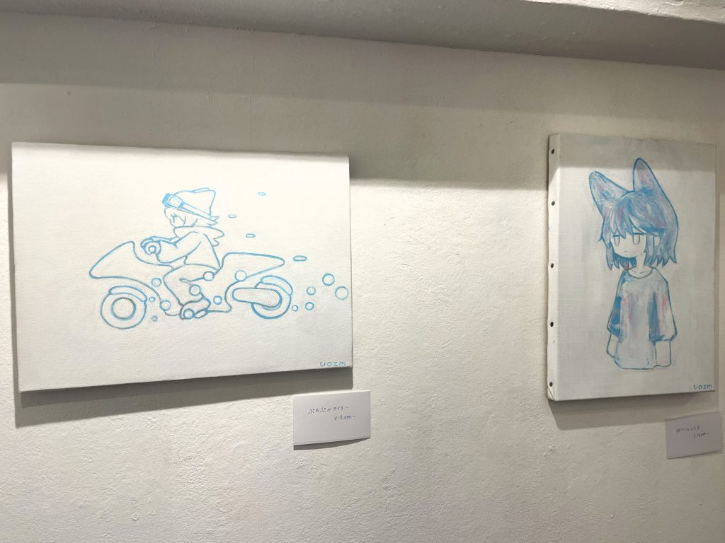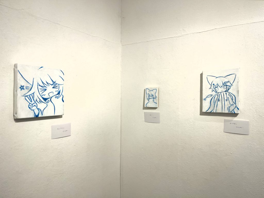 真っ白のキャンバスに水色の線で描かれたキャラクターがシンプルで可愛いですね!
