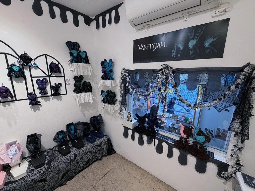 展示にはVanityjamオリジナルキャラクター、”毒カワ”の Vanny, Soppy, Murmurのぬいぐるみたちが展示販売されています😍💕