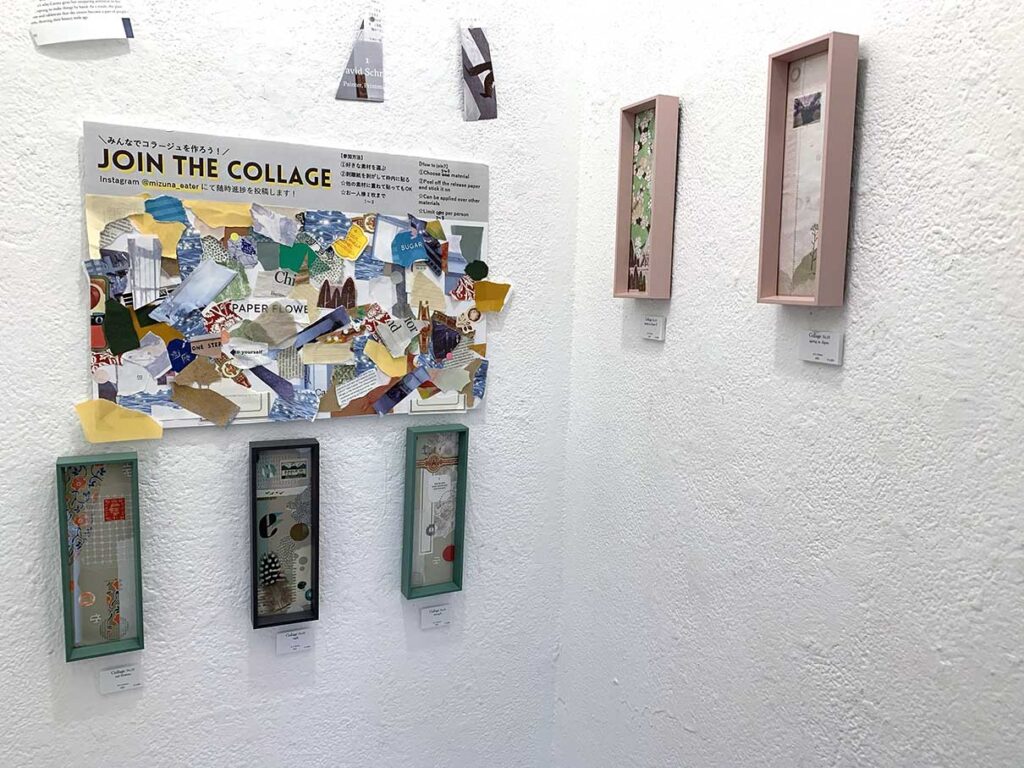 展示内には好きな切り端を好きな箇所に貼る体験型のコラージュ作品もあります。