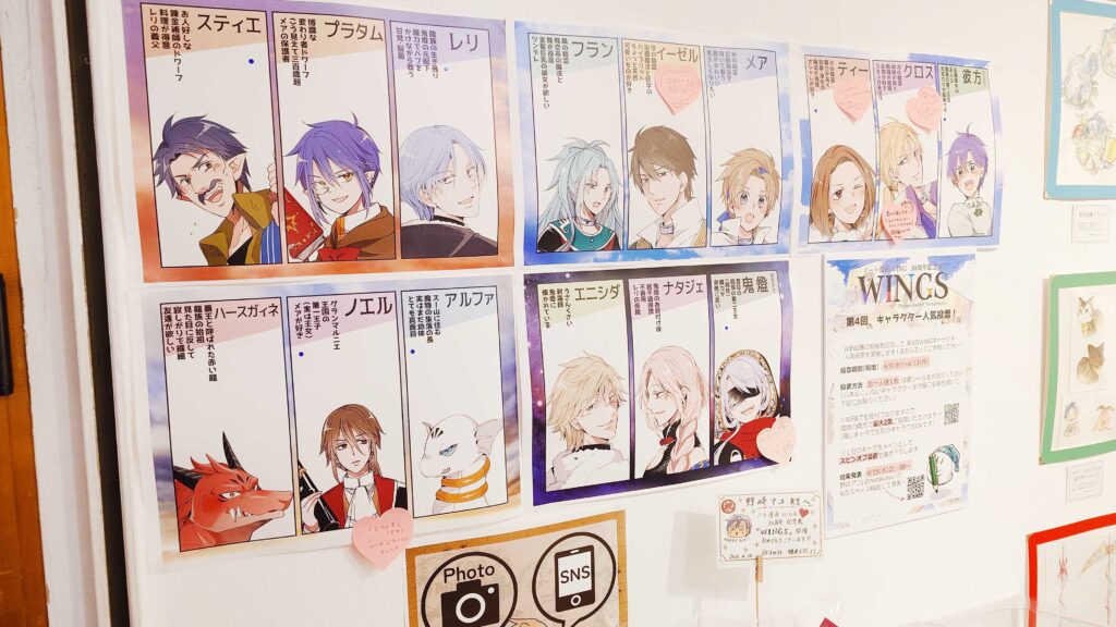 展示会は作品の鑑賞だけでなく、キャラクター投票やワードラリー、一緒に写真が取れる等身大パネルなど、