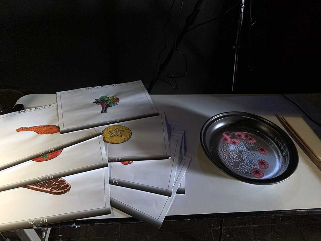 こちらは出てくる料理の具材のカードを専用の機械にセットして回答するゲームになっております。