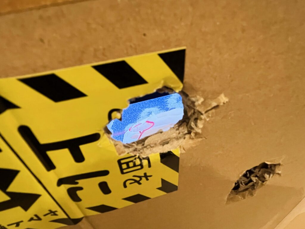 遠くから、単なる穴が空いている箱に見えますが、もうちょっと近く見ると、中に映像が流れています!!